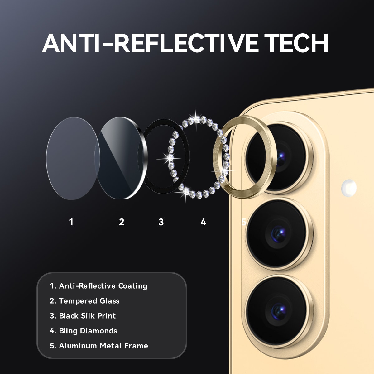 Ge kameran på din Samsung Galaxy S26 lite extra wow-faktor samtidigt som du skyddar den ordentligt. Det här linsskyddet i härdat glas med glittrande rhinestones från Northjo ser till att kameralinserna klarar vardagens små missöden utan problem, och gör dessutom mobilen betydligt roligare att titta på. Full täckning innebär tryggt skydd utan att påverka bildkvaliteten.