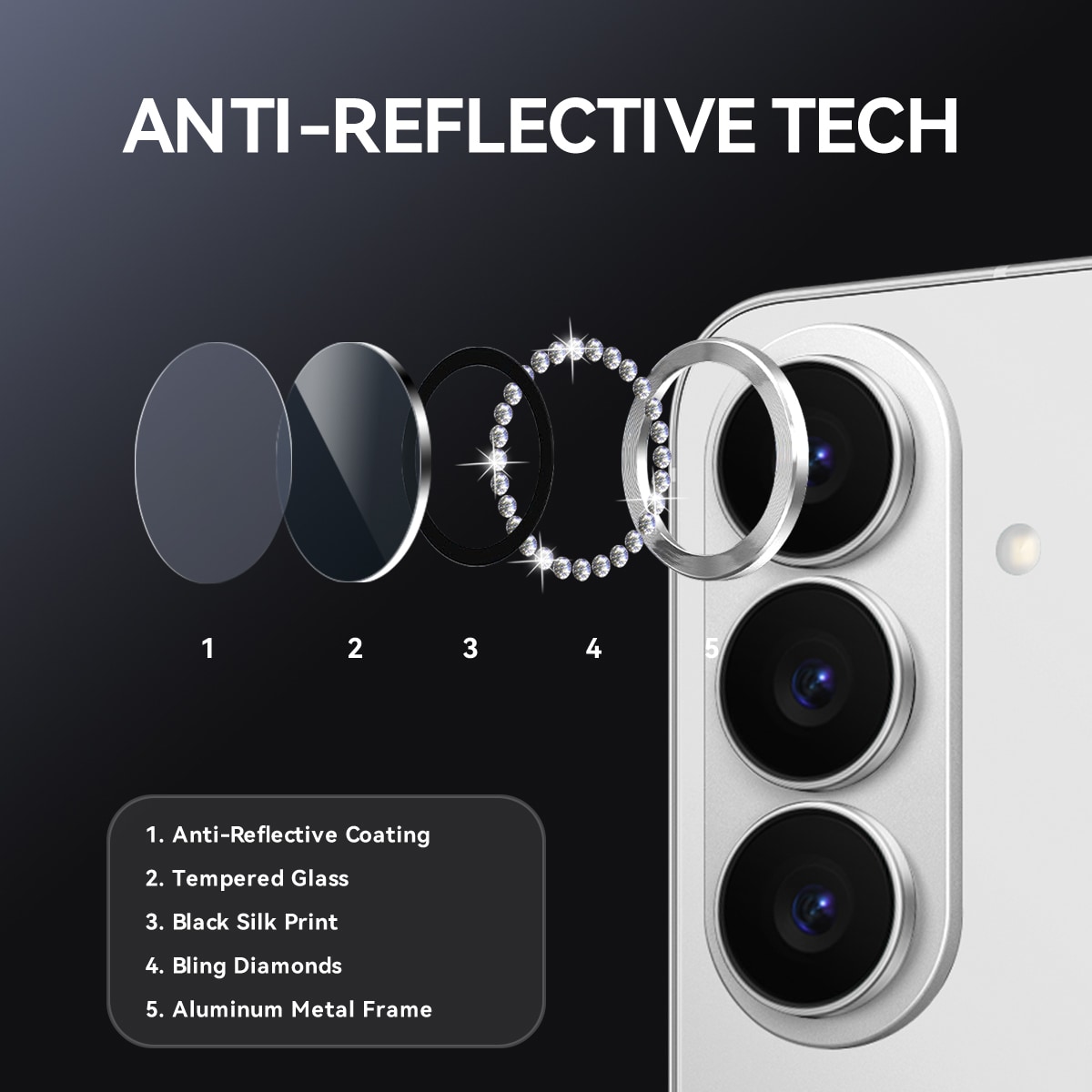 Ge kameran på din Samsung Galaxy S26 lite extra wow-faktor samtidigt som du skyddar den ordentligt. Det här linsskyddet i härdat glas med glittrande rhinestones från Northjo ser till att kameralinserna klarar vardagens små missöden utan problem, och gör dessutom mobilen betydligt roligare att titta på. Full täckning innebär tryggt skydd utan att påverka bildkvaliteten.