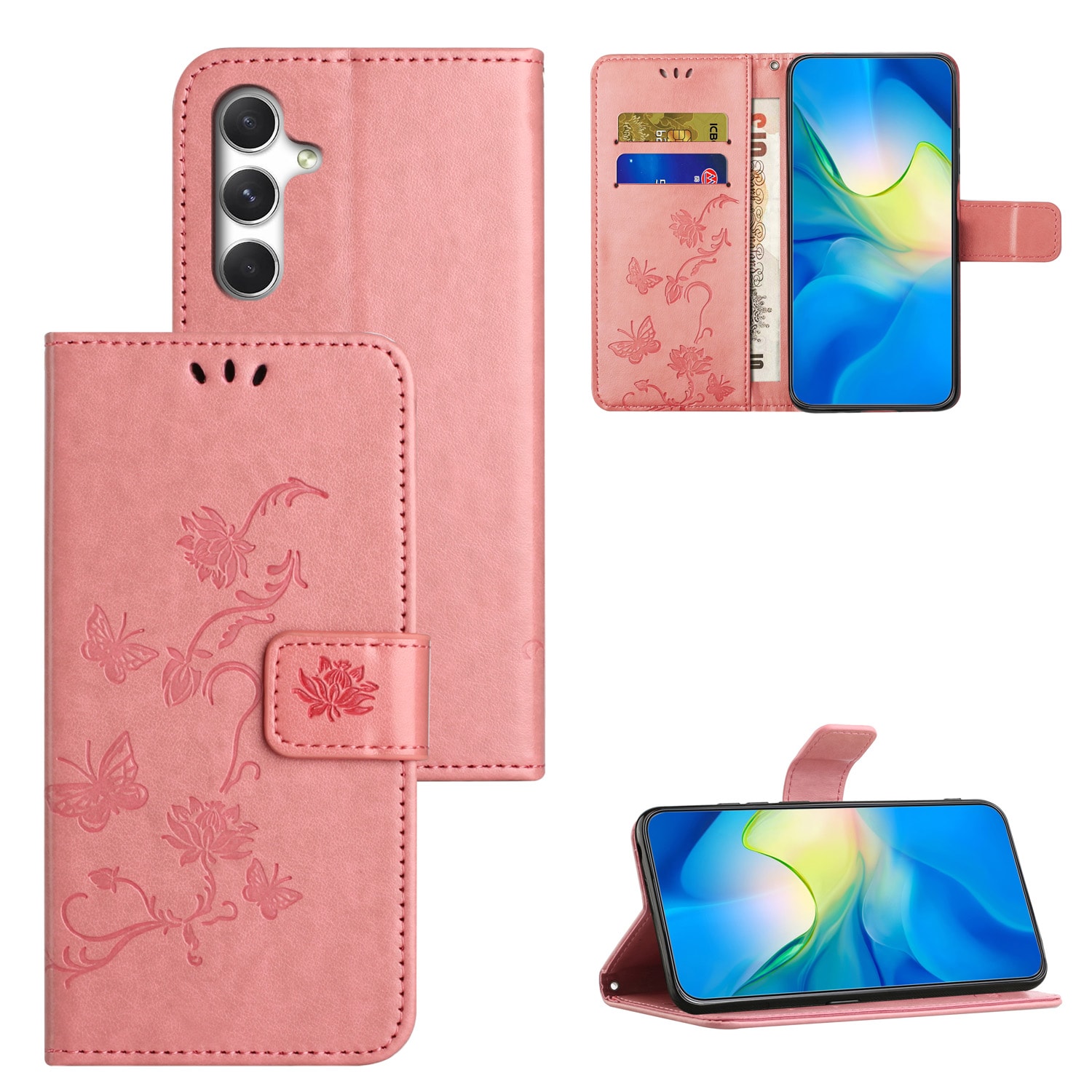 Kika på detta charmiga mobilfodral för Samsung Galaxy S26, fullt med fladdrande fjärilar och fint mönster som verkligen får din telefon att sticka ut i mängden eller i väskan. Detta plånboksfodral i konstläder är inte bara en fröjd för ögat; det håller också din telefon skyddad från topp till tå mot skador, repor och smuts. Din telefon sätts fast i det inbyggda TPU-skalet och du fäller enkelt locket på fodralet runt mobilen vid användning.