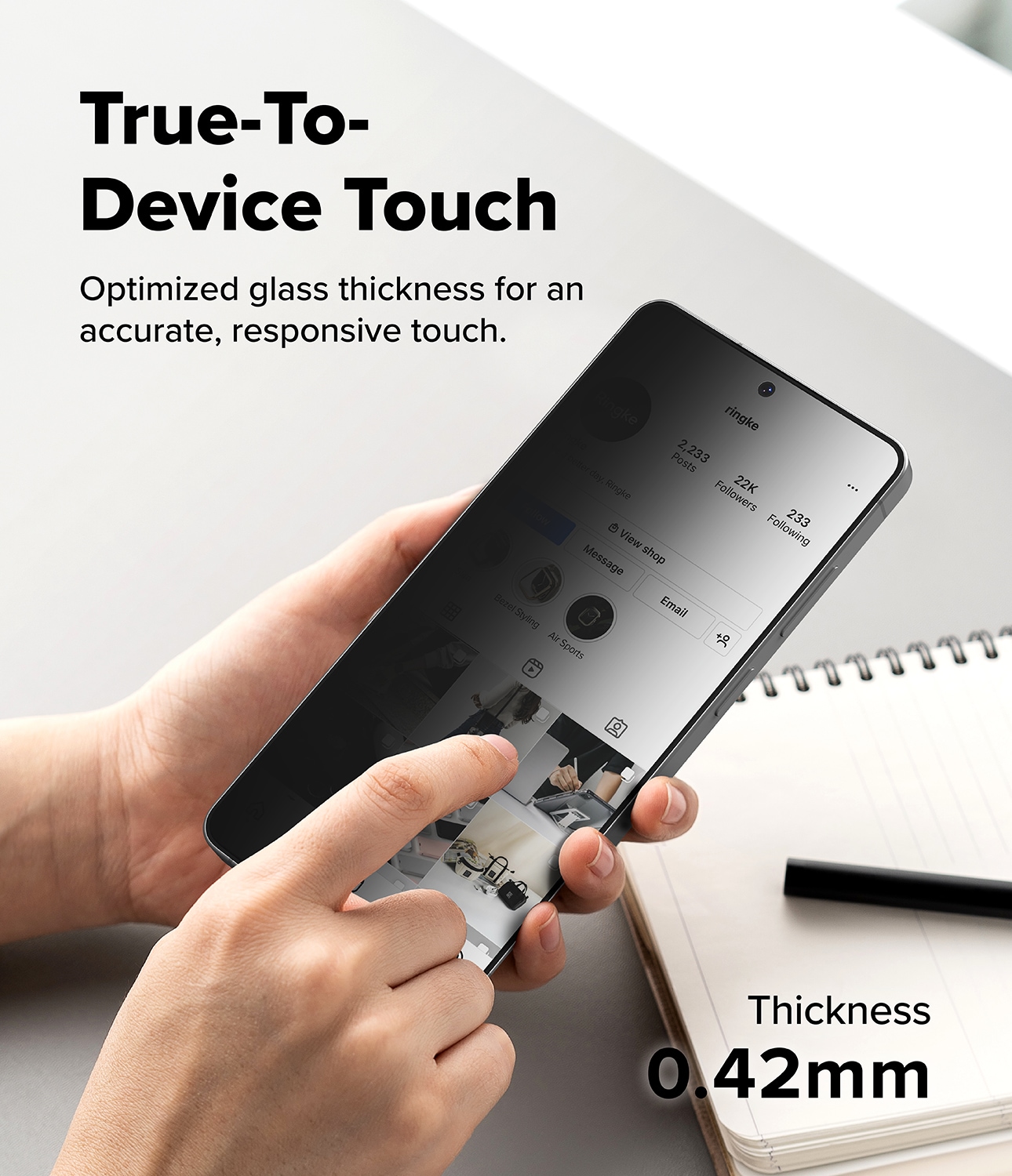 Håll skärmen på din Samsung Galaxy S26 Ultra i toppskick med detta 2-pack privacy-skärmskydd från Ringke. Tillverkade av härdat glas, erbjuder de inte bara otrolig genomskinlighet och hårdhet, men också säkert rundade kanter för att undvika obehagliga vassa ytor. Tack vare anti-spybehandlingen är skärmen kristallklar rakt framifrån, men redan vid 28° vinkel blir den oskarp för omvärlden. Perfekt för dig som vill hålla ditt skärmliv för dig själv!