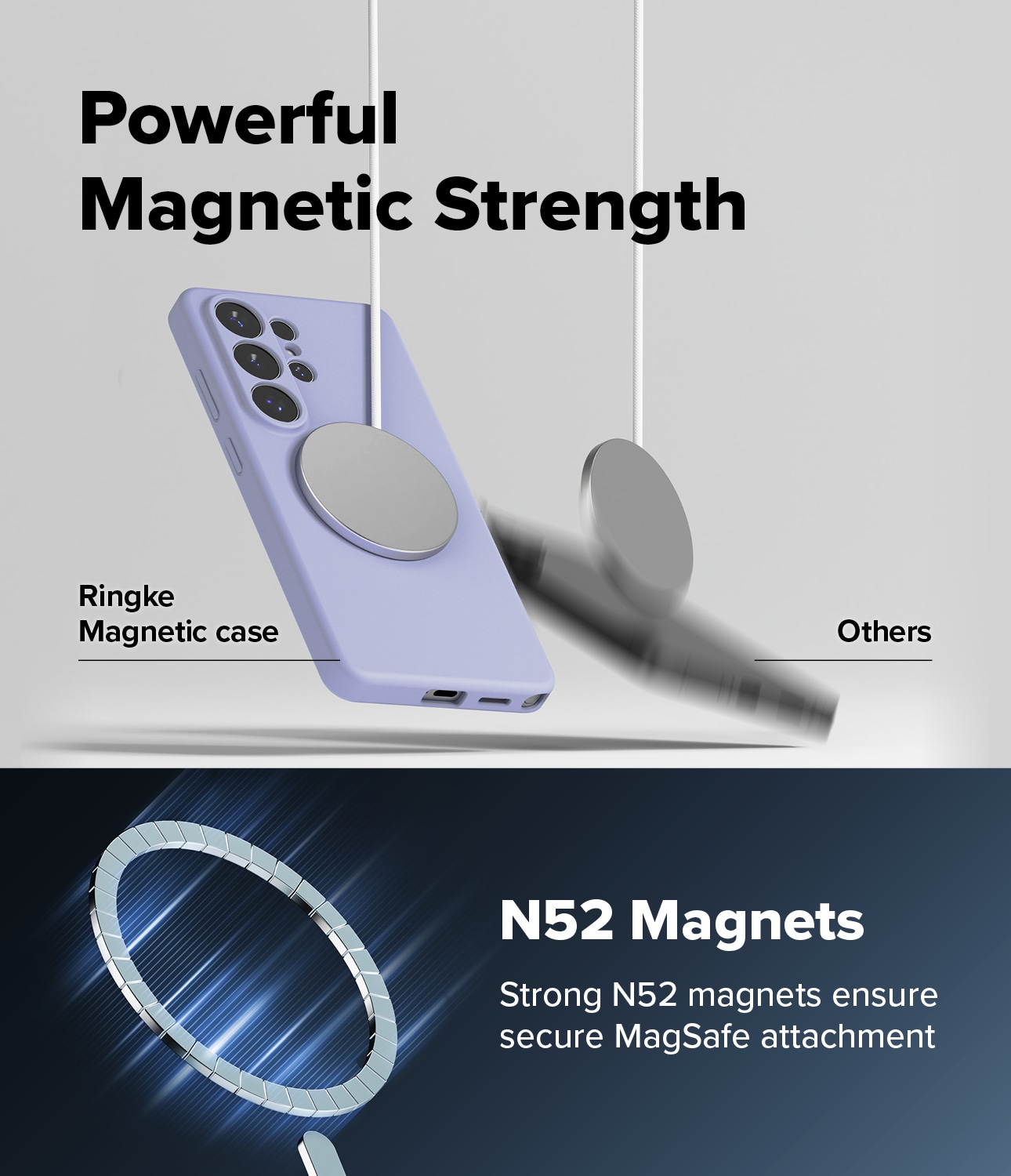 Träffa det superstylade silikonskalet från Ringke för din Samsung Galaxy S26 Ultra - din telefon kommer att tacka dig! Med inbyggd MagSafe-funktionalitet blir det busenkelt att klicka fast alla möjliga MagSafe-tillbehör eller slänga telefonen på laddaren utan att behöva pilla bort skalet.