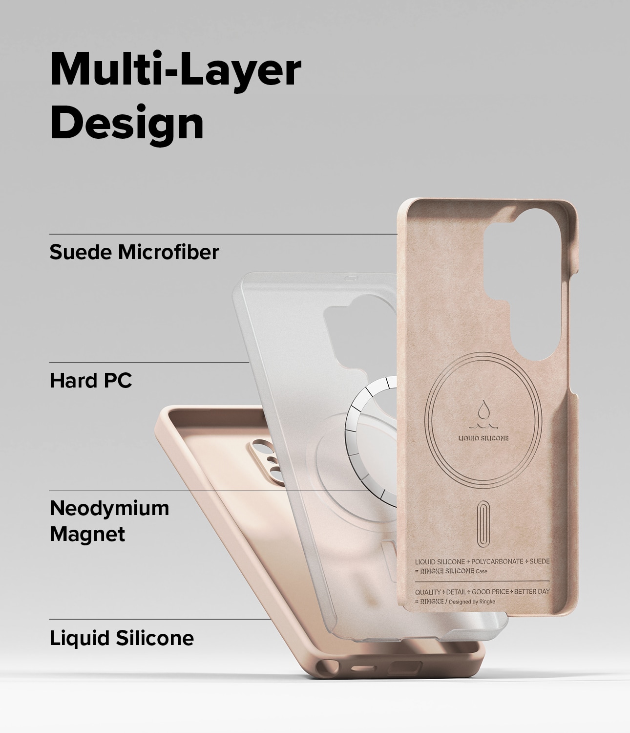Träffa det superstylade silikonskalet från Ringke för din Samsung Galaxy S26 Ultra - din telefon kommer att tacka dig! Med inbyggd MagSafe-funktionalitet blir det busenkelt att klicka fast alla möjliga MagSafe-tillbehör eller slänga telefonen på laddaren utan att behöva pilla bort skalet.