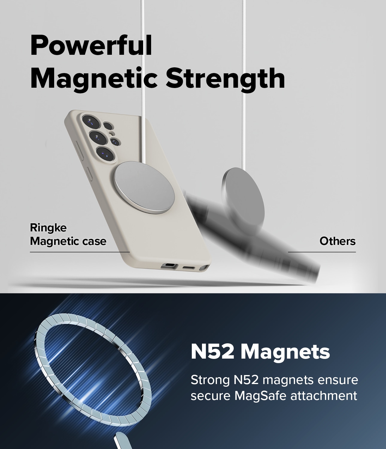 Träffa det superstylade silikonskalet från Ringke för din Samsung Galaxy S26 Ultra - din telefon kommer att tacka dig! Med inbyggd MagSafe-funktionalitet blir det busenkelt att klicka fast alla möjliga MagSafe-tillbehör eller slänga telefonen på laddaren utan att behöva pilla bort skalet.