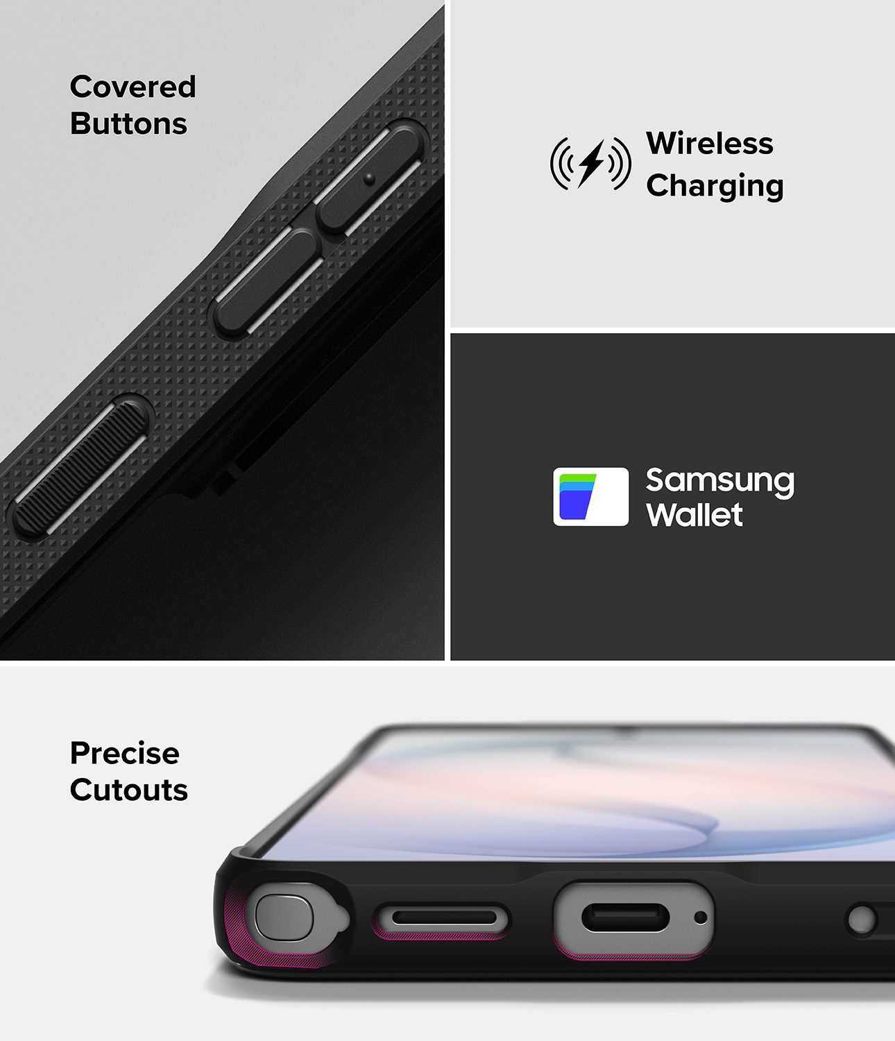 Det här är Onyx Case, det tuffa och snygga skalet Samsung Galaxy S26 Ultra från Ringke. Det här är inte bara ett skal; det är en riddare i skinande rustning med sitt eleganta utseende och kanonbra stötskydd. Tänk dig förstärkta hörn som en extra sköld, upphöjda kanter som en vallgrav, och knappar så taktila att de känns som en hemlig handskakning.
