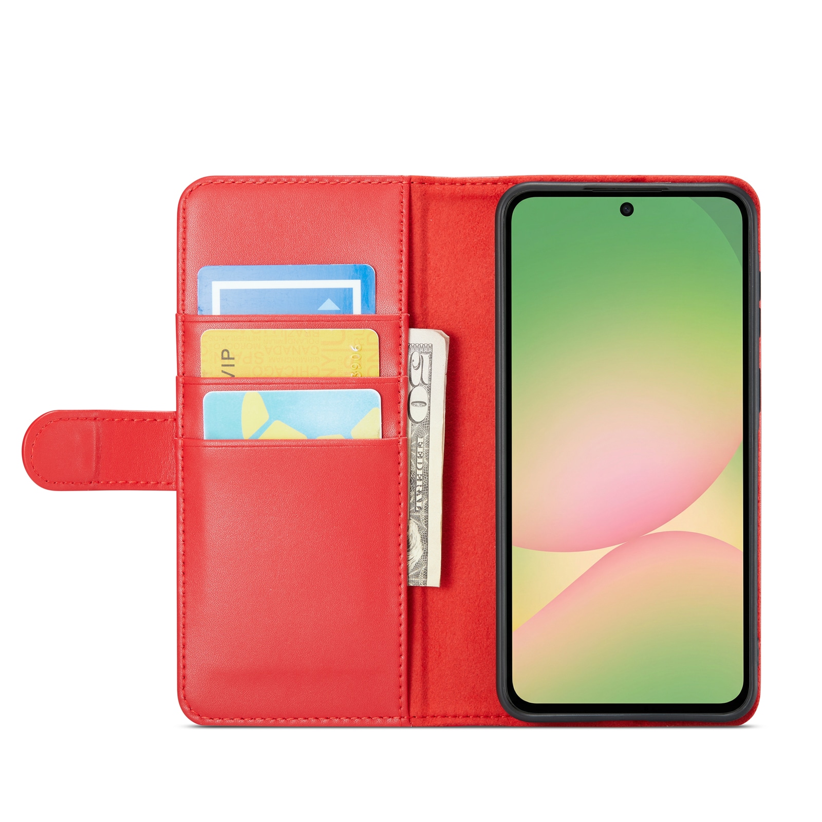 Sugen på ett schysst läderfodral till din Samsung Galaxy A57? Kolla in detta från Mobique! Det är inte bara snyggt, det är också superpraktiskt. Fodralet täcker hela din telefon, och inuti locket finns en grymt rymlig plånbok. Du får plats med ett flertal kort och lite kontanter, perfekt när du inte vill släpa runt på en plånbok.