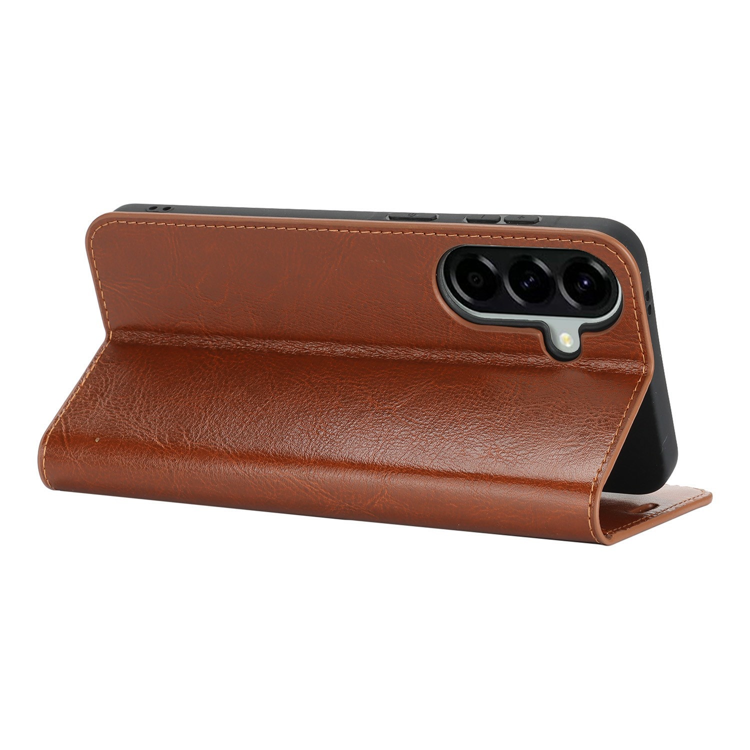 Gör din Samsung Galaxy A57 ännu snyggare med ett praktiskt mobilfodral i äkta läder! Det är slimmat men otroligt smart, med plats för tre kort och en sedel eller två, så du kan lämna plånboken hemma. Din telefon klickar du enkelt i det flexibla, inbuggda skalet som håller den stadigt på plats.