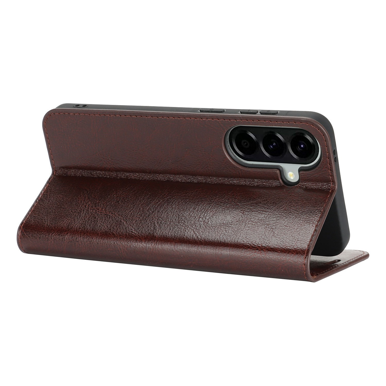 Gör din Samsung Galaxy A57 ännu snyggare med ett praktiskt mobilfodral i äkta läder! Det är slimmat men otroligt smart, med plats för tre kort och en sedel eller två, så du kan lämna plånboken hemma. Din telefon klickar du enkelt i det flexibla, inbuggda skalet som håller den stadigt på plats.