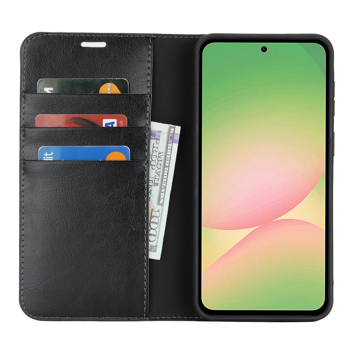 Gör din Samsung Galaxy A57 ännu snyggare med ett praktiskt mobilfodral i äkta läder! Det är slimmat men otroligt smart, med plats för tre kort och en sedel eller två, så du kan lämna plånboken hemma. Din telefon klickar du enkelt i det flexibla, inbuggda skalet som håller den stadigt på plats.