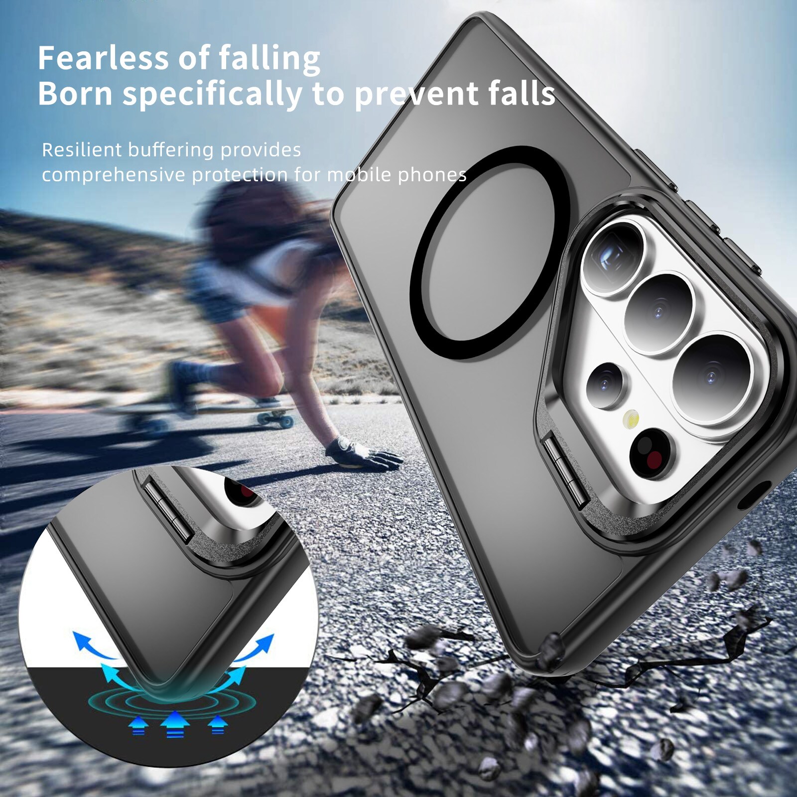 Kolla här, ett hybridskal till din Samsung Galaxy S26 Ultra som inte bara ser bra ut utan också är superpraktiskt! Detta tvådelade underverk kombinerar en TPU-kärna med ett hårt plasthölje, vilket ger dig den ultimata skyddsbubblan mot livets små (och stora) olyckor. Men vänta, det blir bättre! Skalet är utrustat med en metallram runt kameran för att hålla dina linser säkra från olycksaliga stötar och ger även din telefon en lyxig touch. Dessutom går den lilla ramen att fälla ut och tada! Det blir ett praktiskt kickstand som är perfekt för när du är sugen på ett serie-maraton.