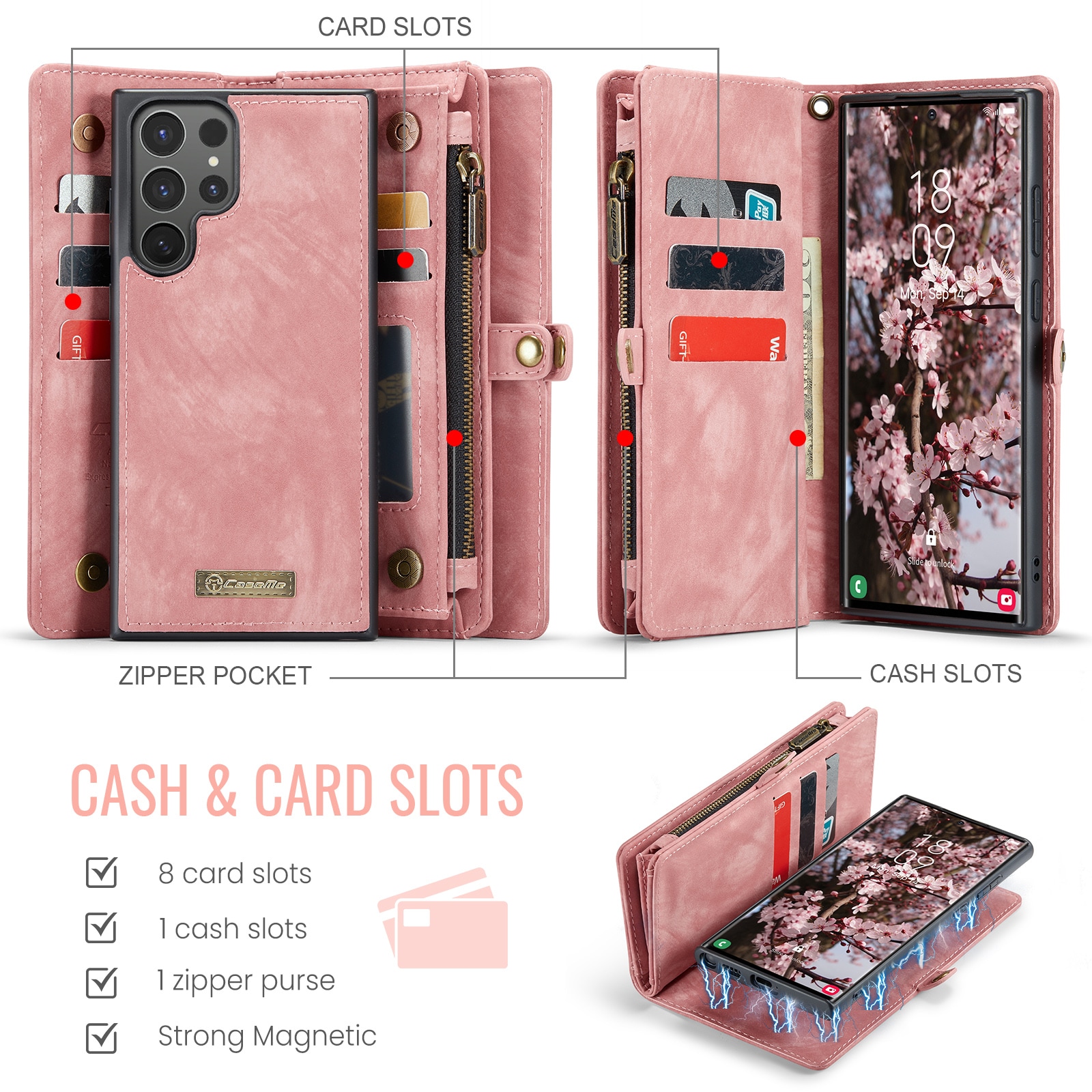 CaseMe - Samsung Galaxy S26 Ultra Rymligt plånboksfodral med många kortfack, Rosa