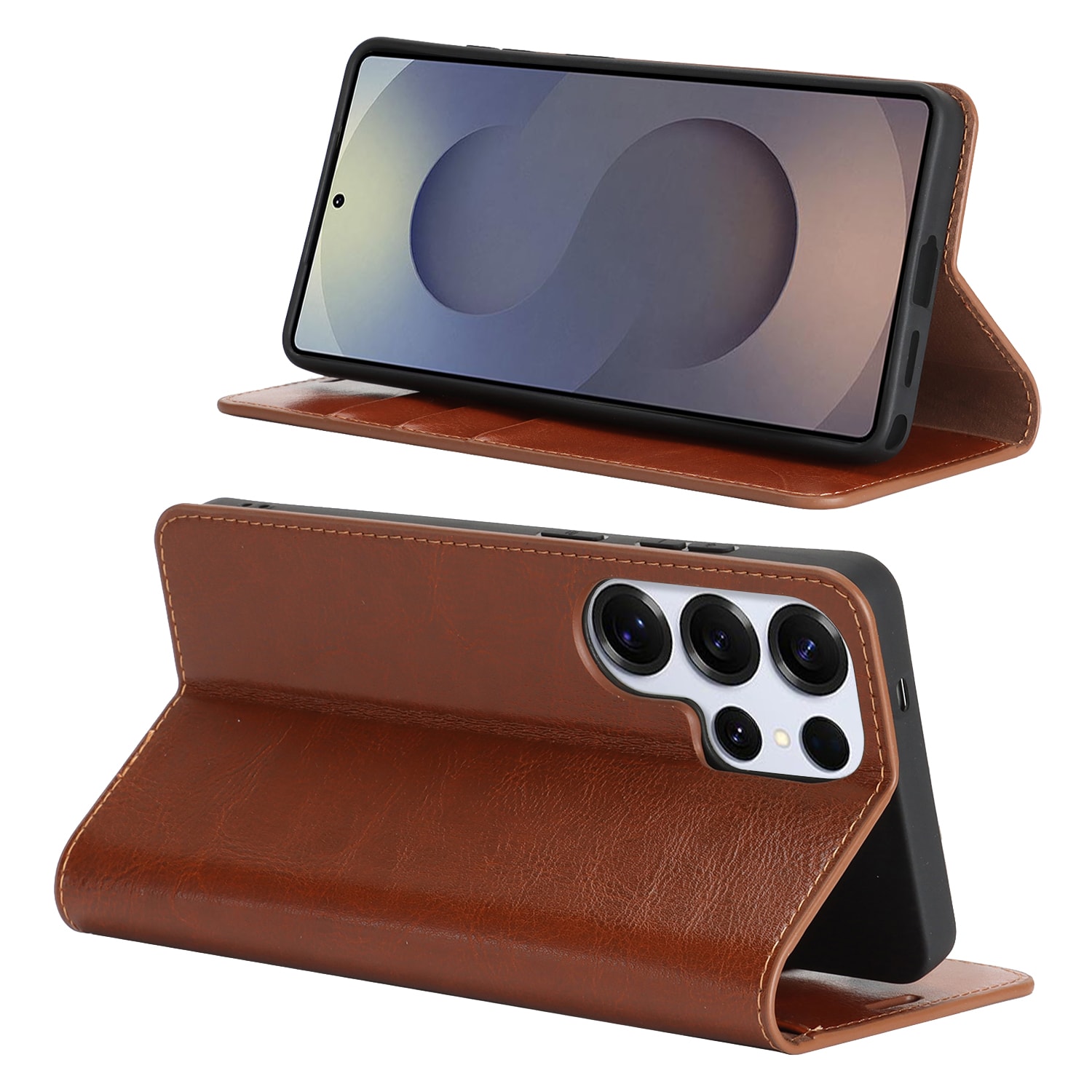 Gör din Samsung Galaxy S26 Ultra ännu snyggare med ett praktiskt mobilfodral i äkta läder! Det är slimmat men otroligt smart, med plats för tre kort och en sedel eller två, så du kan lämna plånboken hemma. Din telefon klickar du enkelt i det flexibla, inbuggda skalet som håller den stadigt på plats.