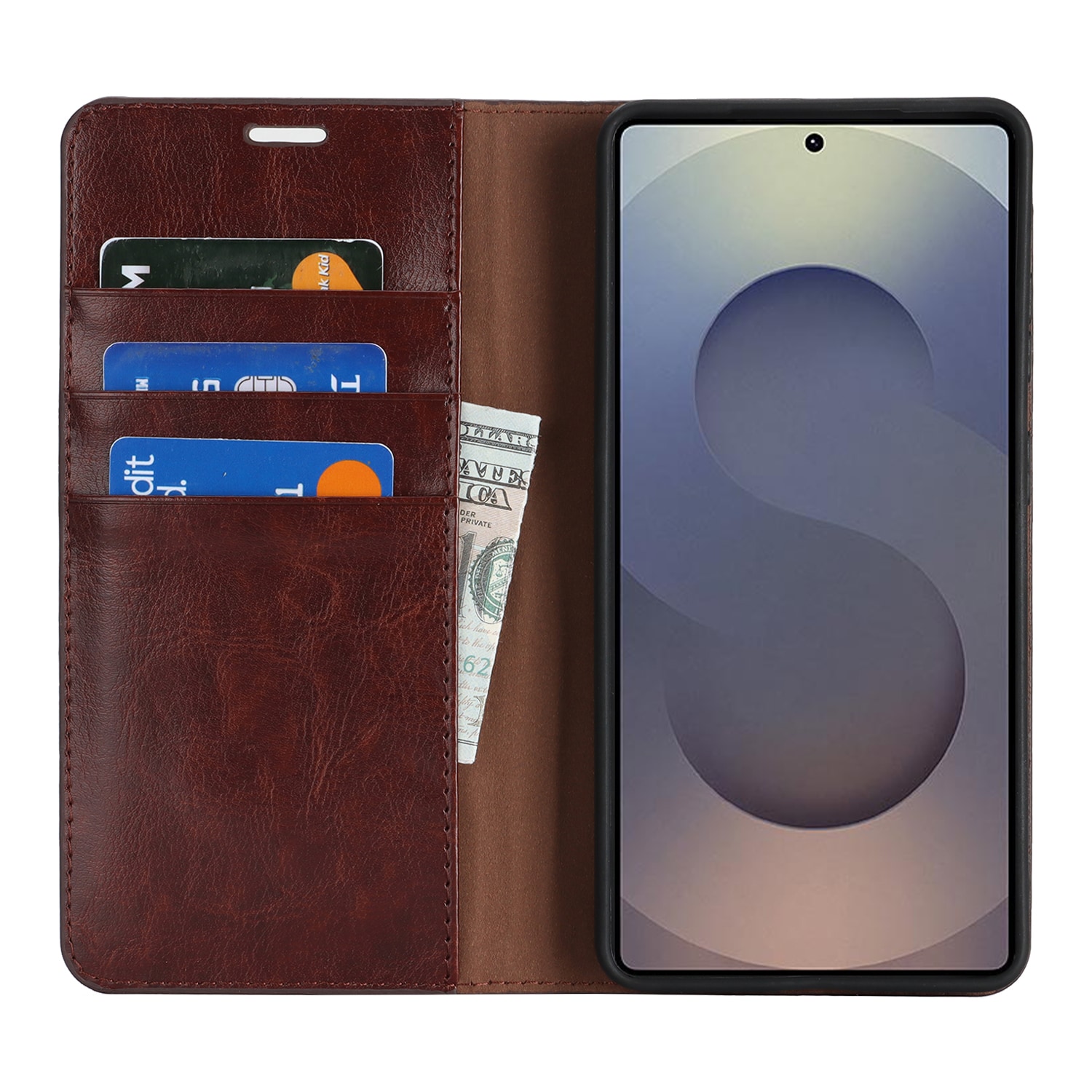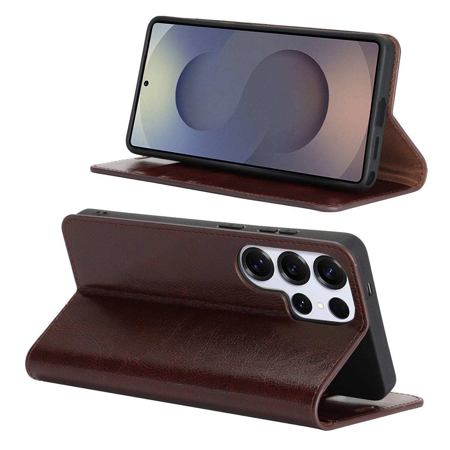 Gör din Samsung Galaxy S26 Ultra ännu snyggare med ett praktiskt mobilfodral i äkta läder! Det är slimmat men otroligt smart, med plats för tre kort och en sedel eller två, så du kan lämna plånboken hemma. Din telefon klickar du enkelt i det flexibla, inbuggda skalet som håller den stadigt på plats.
