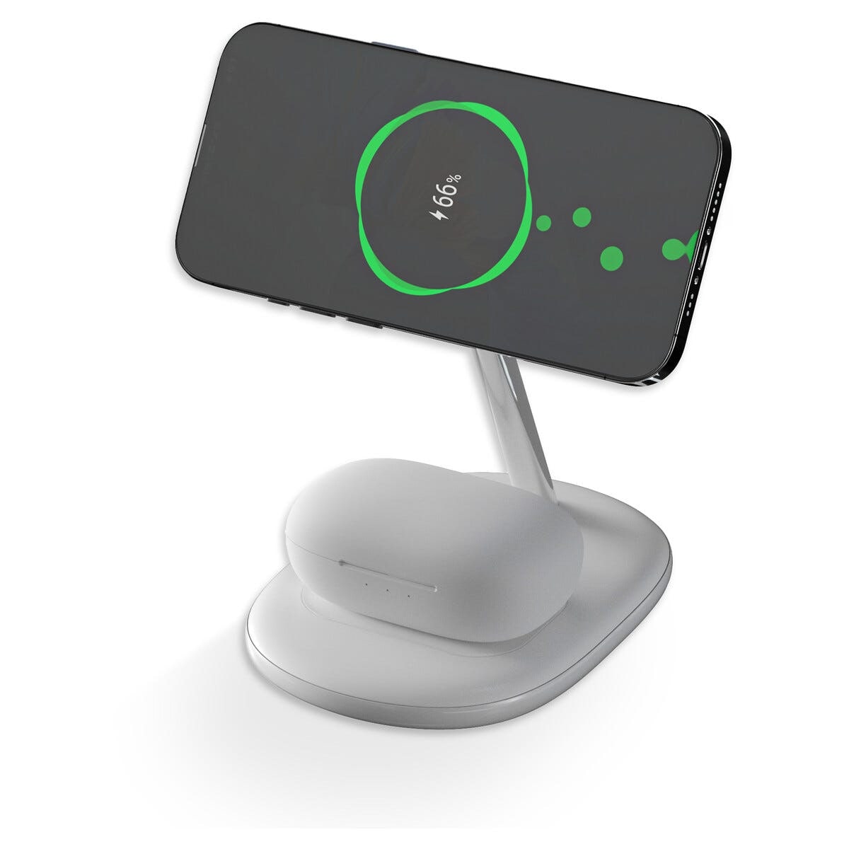 Gör laddningen enklare och mer organiserad med en magnetisk trådlös Qi2 laddningsstation 2-i-1 från Clas Ohlson som låter dig ladda mobilen och dina hörlurar samtidigt. Den smarta magnetiska designen håller telefonen stabilt på plats medan Qi2-tekniken ger snabb och effektiv laddning med upp till 15 W effekt. Perfekt när du vill ha mobilen i rätt vinkel för video, samtal eller arbete samtidigt som den laddas. Den separata laddplattan gör det smidigt att ge AirPods eller andra trådlösa TWS-hörlurar ny energi utan kabeltrassel. Den stilrena och kompakta formen gör laddstationen till ett praktiskt tillbehör på skrivbordet eller nattduksbordet.