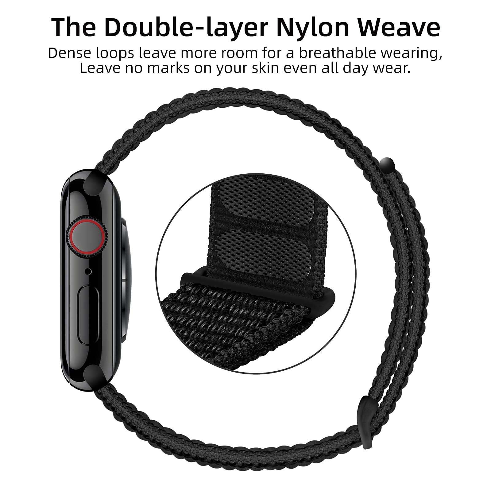 Detta Apple Watch-armband i nylon är ett utmärkt val för en aktiv livsstil. Materialet andas, tål väta och fungerar lika bra under träning som i vardagen – ett praktiskt tillbehör för alla tillfällen.