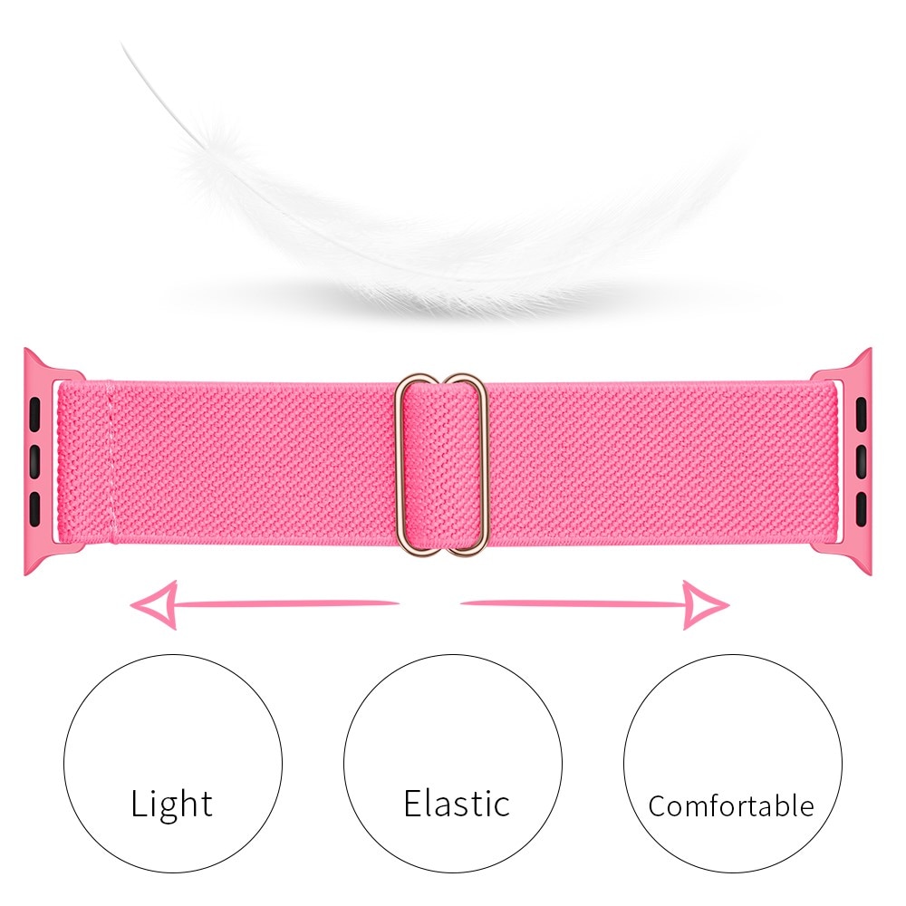 Kolla in detta superkomfortabla armband i stretchig resår till Apple Watch Series 8 41mm! Det här armbandet är en dröm för alla som är i farten. Tack vare den smarta designen kan du snabbt justera det så att det passar just din handledsstorlek perfekt. Gjort i slitstark nylon, tål det här armbandet allt från svettiga träningspass till regniga dagar utan att tappa stilen. Plus, den mjuka resåren känns som en smekning mot huden och håller din klocka stadigt på plats.