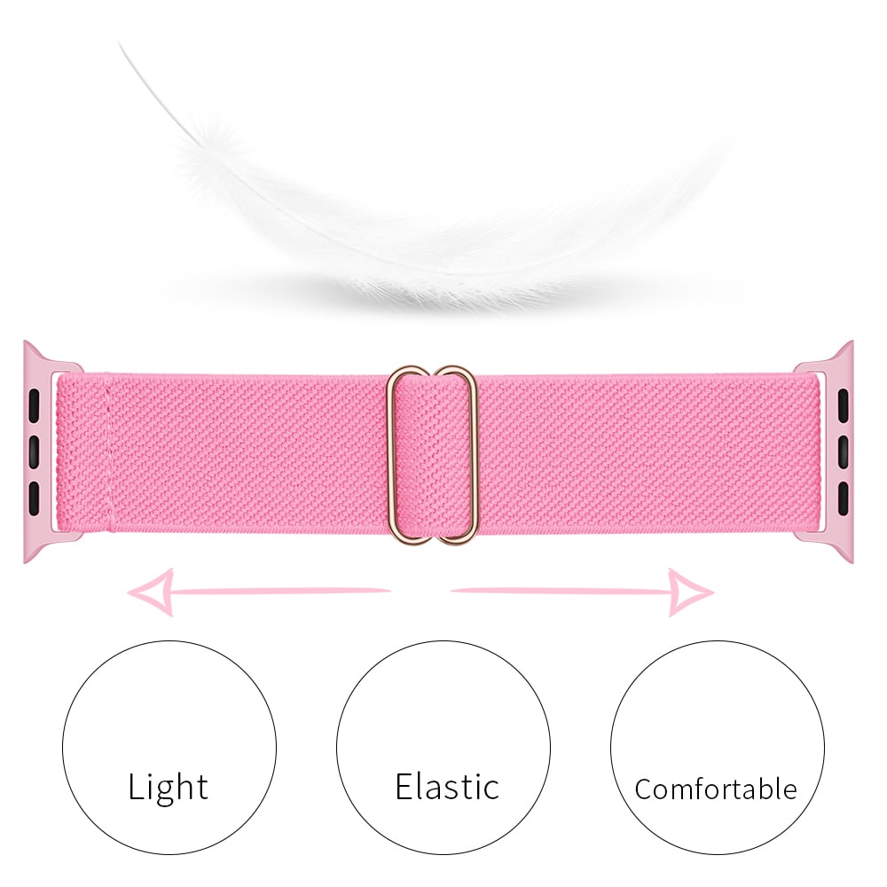 Kolla in detta superkomfortabla armband i stretchig resår till Apple Watch Series 8 41mm! Det här armbandet är en dröm för alla som är i farten. Tack vare den smarta designen kan du snabbt justera det så att det passar just din handledsstorlek perfekt. Gjort i slitstark nylon, tål det här armbandet allt från svettiga träningspass till regniga dagar utan att tappa stilen. Plus, den mjuka resåren känns som en smekning mot huden och håller din klocka stadigt på plats.