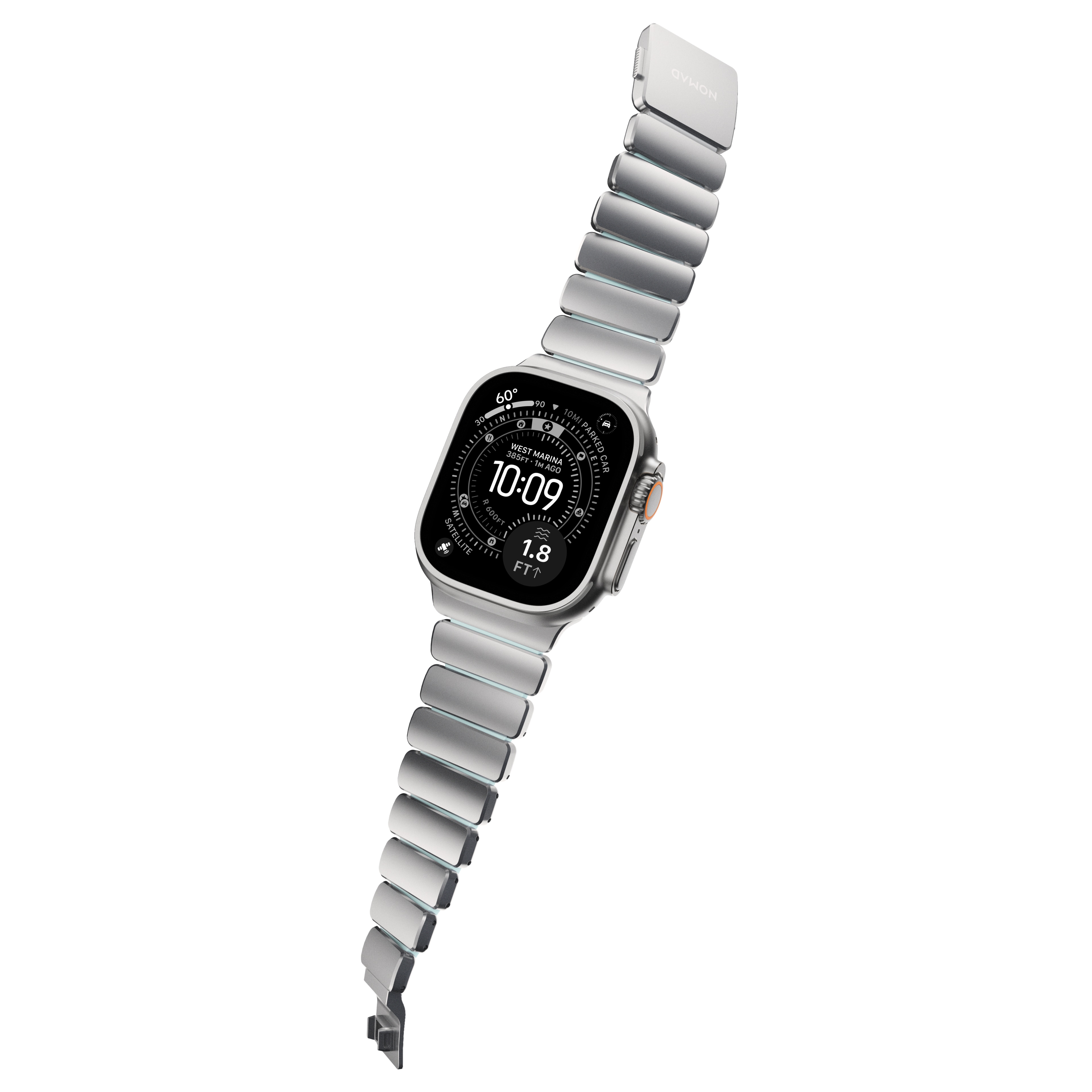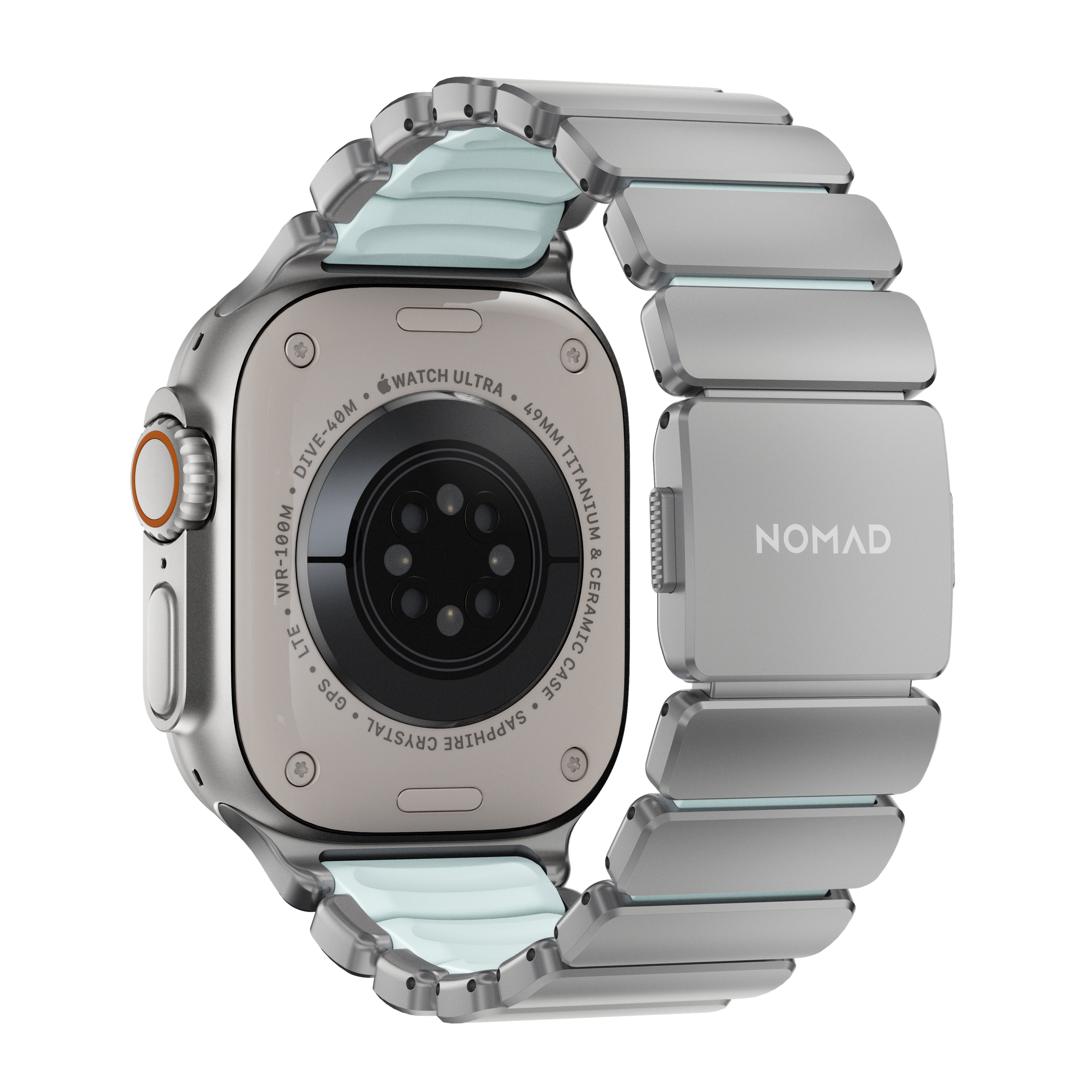 Ge din klocka en uppgraderad look med Nomad Stratos Band till Apple Watch Ultra 49mm 3rd Gen! Här möts titanstyrka och FKM-gummi i ett klockarmband som tål allt - regn, svett, äventyr och vardagsstress. Det är reptåligt, vattentåligt och sjukt bekvämt att bära hela dagen. De flexibla länkarna följer handleden naturligt, och det magnetiska spännet klickar fast med den där tillfredsställande känslan som får dig att le varje gång.