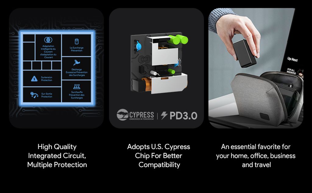 - Kraftfull USB-C laptopladdare med upp till 100W effekt