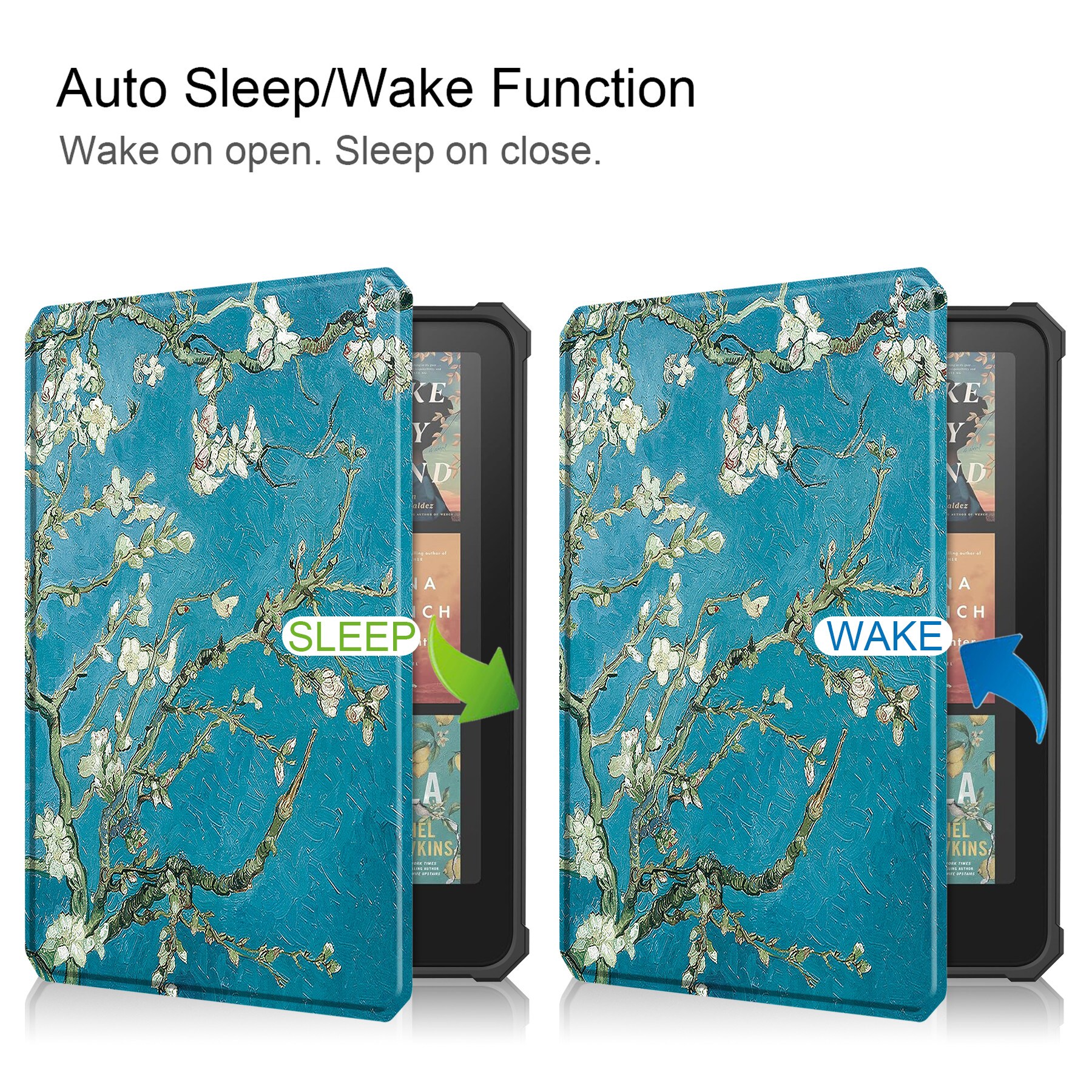 När du är redo att dyka in i nästa kapitel, vik bara locket runt baksidan, och vips, du är redo att förlora dig i böckernas världar. Och som om inte det vore nog, så har fodralet en smart funktion som automatiskt släcker skärmen när du stänger det och väcker den till liv igen när du öppnar upp. Plus, med mikrofiber på insidan får din läsplatta en extra mjuk kram som håller reporna borta. Du har fortfarande fri tillgång till alla knappar och kontakter, så inget kommer mellan dig och ditt nästa stora äventyr i läslandet!