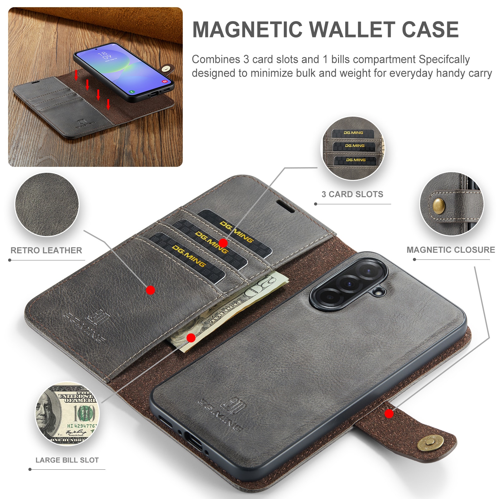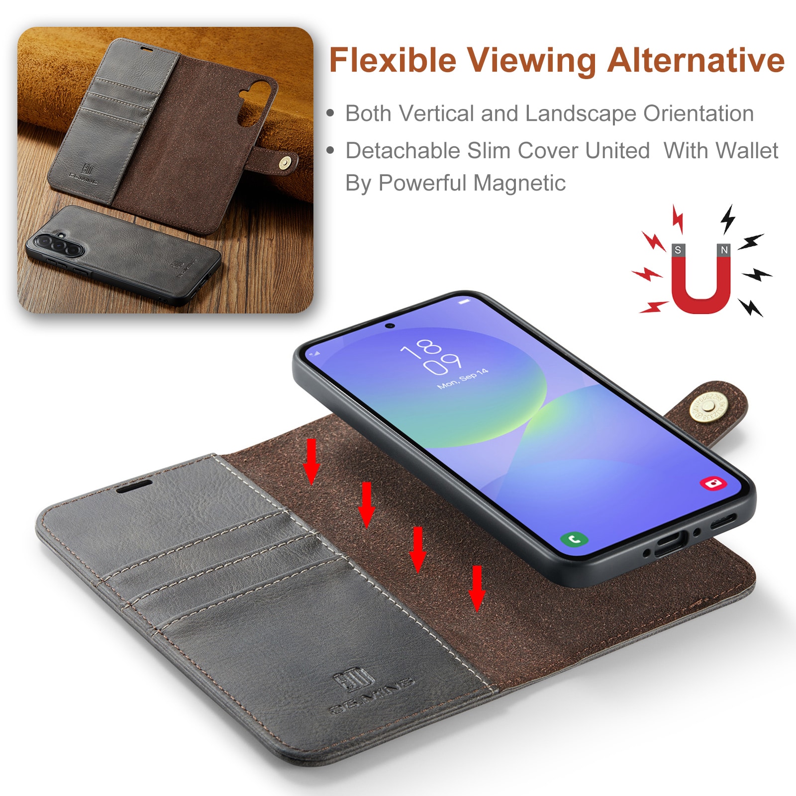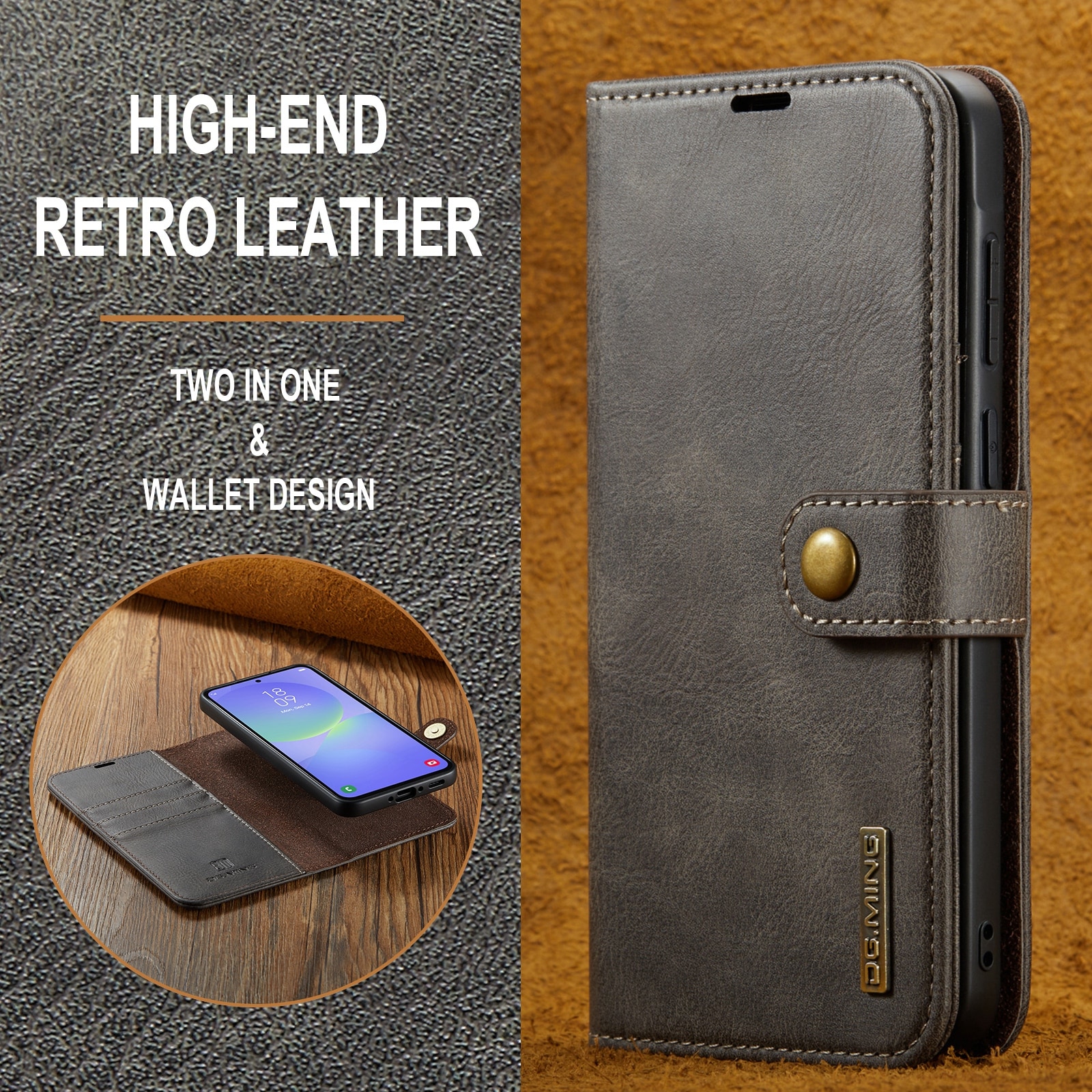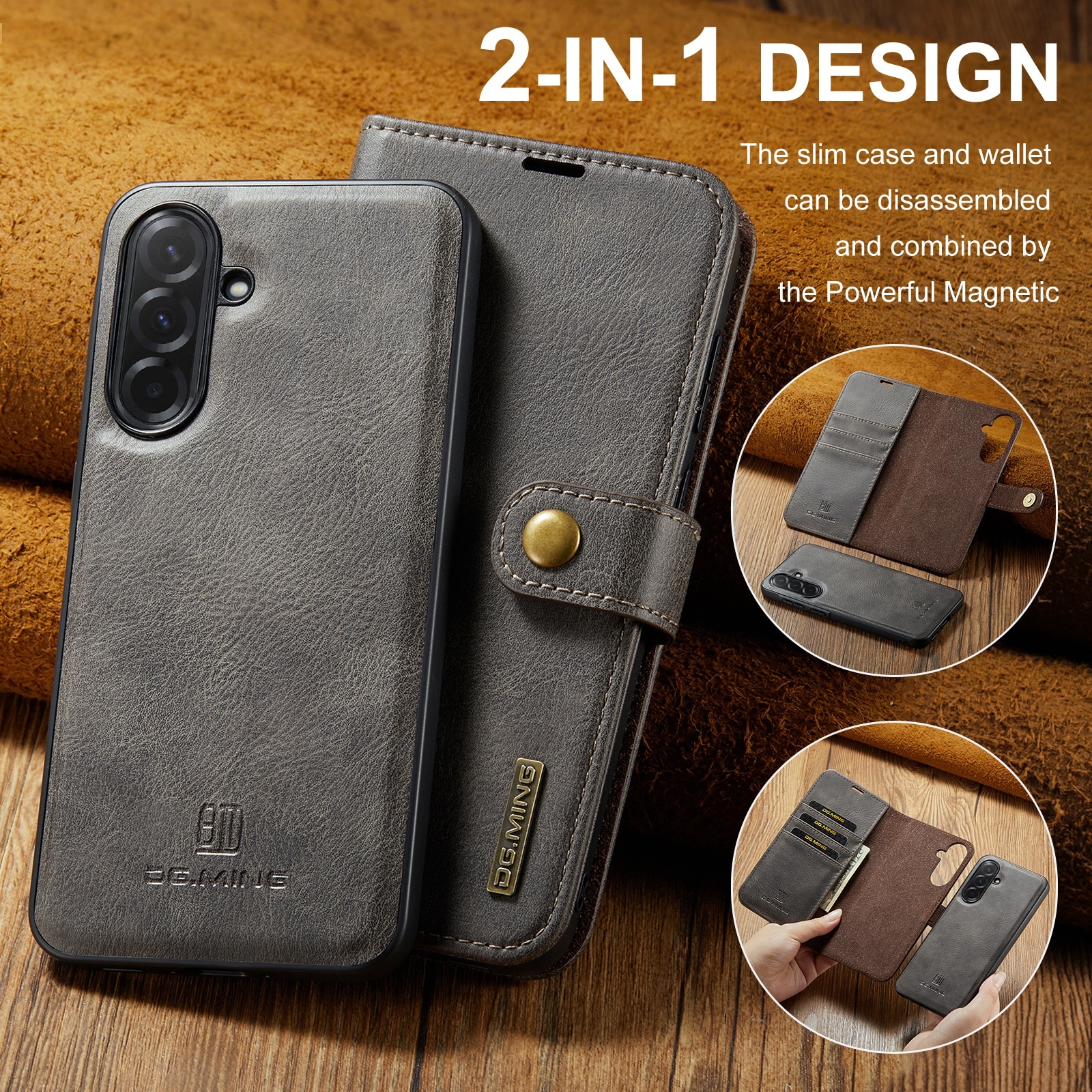Kolla in vårt smarta fodral med avtagbart magnetskal till Samsung Galaxy A37 från DG.MING. Det här fodralet kombinerar klassisk stil med praktisk funktionalitet. Med det avtagbara skalet kan du enkelt ta bort telefonen från fodralet när du är hemma eller på jobbet, utan att behöva ha med hela fodralet också.