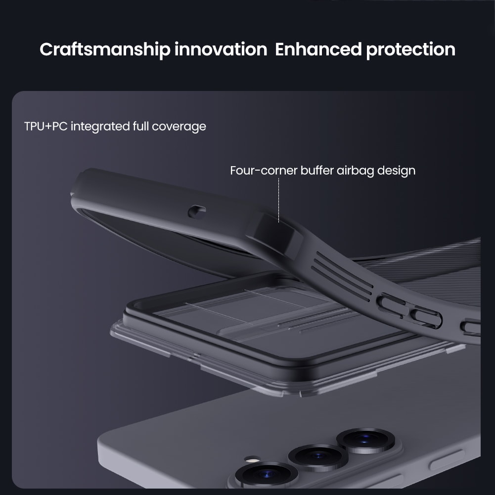 Det skyddande skalet från Nillkin för Samsung Galaxy S26 är en innovativ lösning för dig som värderar både estetik och funktionalitet i din mobilaccessoar. Med dess unika CamShield-funktion får du ett inbyggt kameraskydd som enkelt kan skjutas fram för att skydda kameran mot repor och skador när den inte används. Denna funktion är speciellt användbar för att förlänga livslängden på din telefons kamera och behålla bildkvaliteten över tid.